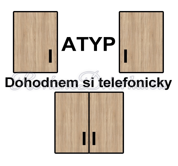 Menšie typizované dvierka sú vyrobené ako univerzálne dajú sa použiť ako ĽAVÉ aj PRAVÉ - kľučka je umiestnená v strede. Pri atypických dvierkach - ĽAVÝCH alebo PRAVÝCH sa odporúča kľučku alebo PUSH systém umiestniť nižšie od stredu kvôli lepšej otvárateľnosti. Upozornenie: Obrázky a farebné prevedenia môžu byť ilustračné!!!